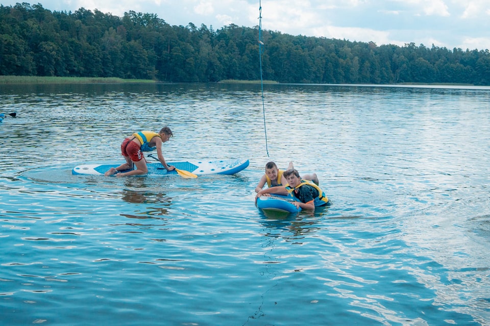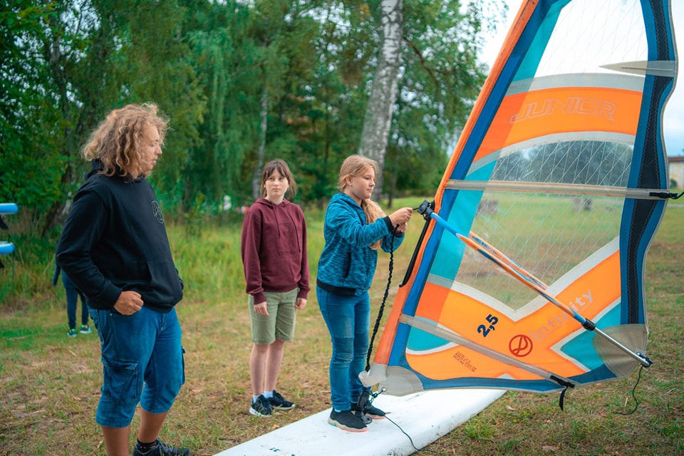 Żeglarstwo to coś więcej niż sport, to styl życia. Dodaje energii buduje siłę, korzystnie wpływa na zdrowie, ale również włącza nas do pewnej pozytywnie zakręconej grupy społecznej. Żeglując nawiązujesz lepszy kontakt z naturą, uczysz się rozumieć wiatr i rozróżniać chmury a także poznajesz wiele pięknych miejsc. Dzieci z naszego klubu skorzystały w tym roku z uroków obozu żeglarsko – sportowego i spędziły tydzień lub dwa wakacji nad jeziorem Łajskim na półwyspie Lalka zgłębiając wiedzę żeglarską windsurfingową i kajakarską, przeplataną różnymi atrakcjami i zabawami na wodzie i lądzie. Wróciły opalone pełne pozytywnej energii, uśmiechnięte, bogatsze o wiedzę stawiania foka, zwrotu przez sztag i rufę, sklarowania łodzi, wybierania i zwijania żagla, wiązania węzłów, pływania na pagajach, supach, kajakach i desce.