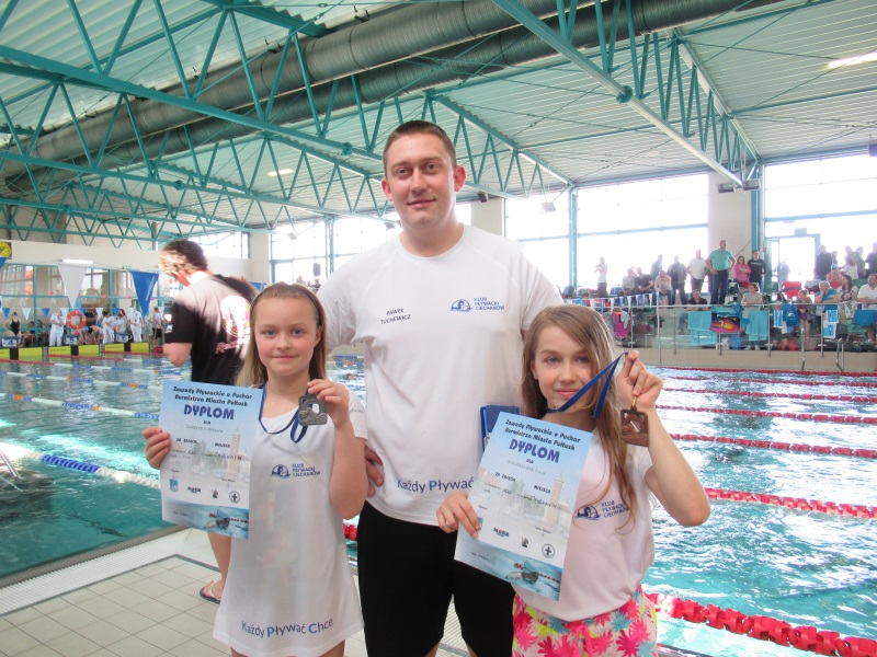 Drugim miejscem, do którego zagościliśmy tego dnia był Pułtusk i zawody o Puchar Burmistrza tego miasta. Klub Pływacki Ciechanów reprezentowali: Butryn Wiktoria, Kochmańska Łucja, Kurowska Alicja, Olszak Natalia, Zarzecka Roksana, Boniakowski Kacper, Hermann Mikołaj, Jurski Franciszek, Paliński Krzysztof i Szczepański Wiktor. Tu również padło wiele życiówek i zdobyliśmy 4 medale. Krążki wypływali: Roksana Zarzecka - 2 srebra (100m zmiennym i 50m motylkowym), Łucja Kochmańska brąz (100m zmiennym) i Wiktor Szczepański również brąz płynąc 50m klasycznym. W pierwszej 15 zawodów znaleźli się: