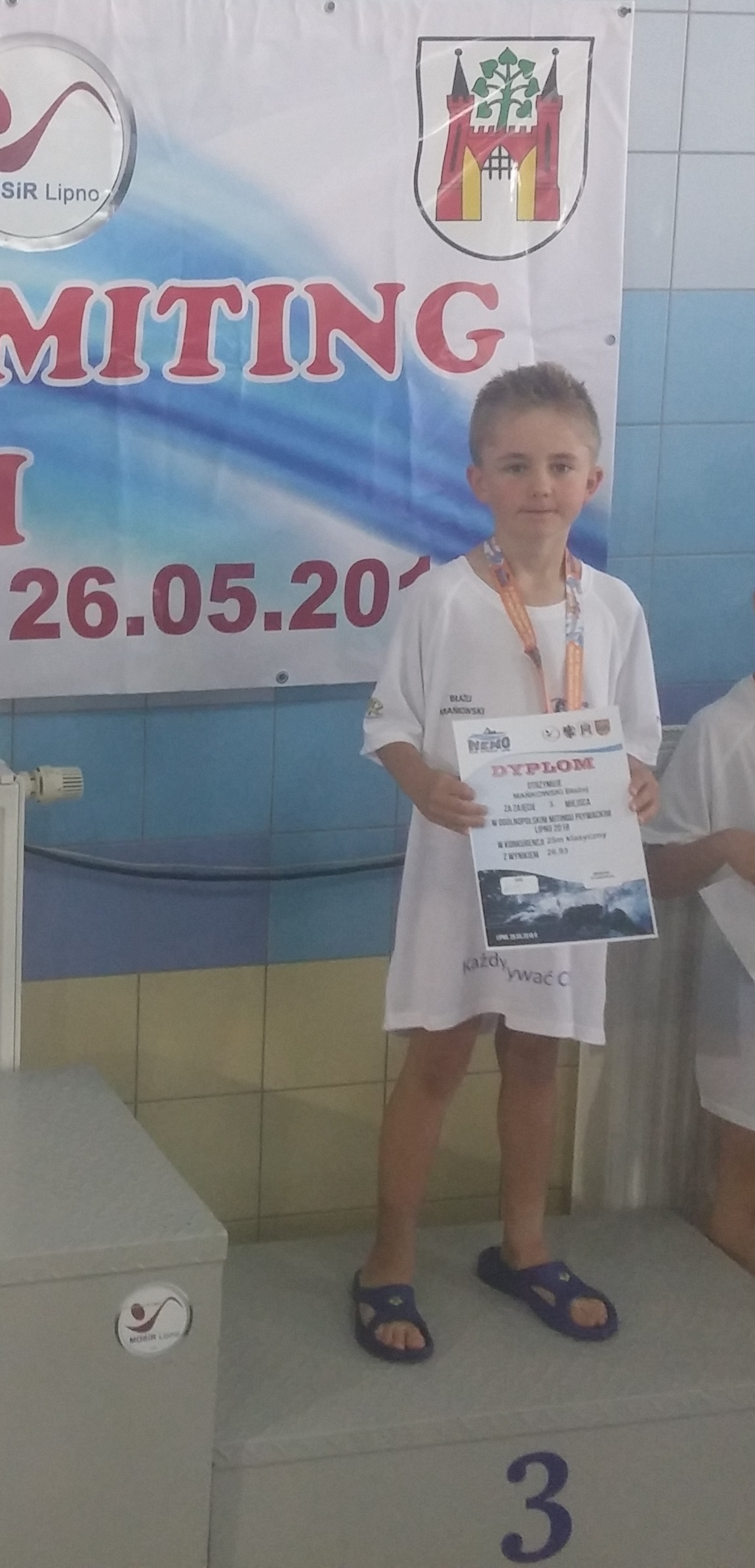 W sobotę 26.05.2018 r. nasi mali pływacy wyjechali na zawody do Lipna. Klub Pływacki Ciechanów dzielnie reprezentowali: Ala Gołębiewska, Hania Jurska, Zosia Radulska, Olaf Grądzik, Franek Jurski, Antoś Konwerski, Igor Kurowski i Błażej Mańkowski. Dla niektórych były to wyjątkowe zawody, bowiem ów zawodnicy musieli pokonać pierwszy raz dystans 50m. Serdeczne gratulacje za piękne pływanie. Na zawodach nie zabrakło również zdobyczy medalowych. Złoty medal zdobyła Hania Jurska płynąc 25m stylem grzbietowym oraz brązowy medal wypływał stylem klasycznym Mańkowski Błażej. Gratulujemy wszystkim zawodnikom oraz życzymy dalszych sukcesów.