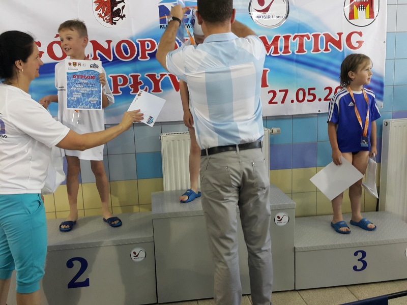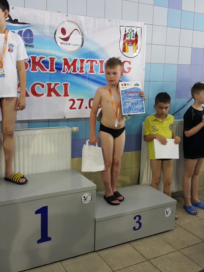 W sobotę 27.05.2017 r. część naszych pływaków pojechała na zawody do Lipna. Wyjazd ten możemy zaliczyć do udanych. Zdobyliśmy 6 medali: 2 srebrne i 4 brązowe. Srebra zdobył, w kategorii rocznika 2010, Paweł Boniakowski na dystansie 25 m stylem dowolnym (29.18) i grzbietowym (28.08). Brąz wywalczyli: 2 medale dla Aleksandra Przytarskiego - kategoria rocznika 2009, również na dystansie 25 m dowolnym (20.46) i grzbietowym (25.61), 1 medal dla Olafa Grądzika - kategoria rocznika 2010 - 25 m grzbietem (30.65) oraz 1 medal wywalczył również Wiktor Szczepański, w kategorii rocznika 2008, na dystansie 25 m stylem klasycznym (24.85). Serdecznie gratulujemy zawodnikom oraz trenerom: Magdalenie Kumińskiej, Krzysztofowi Truszczyńskiemu oraz Pawłowi Tuchewiczowi.